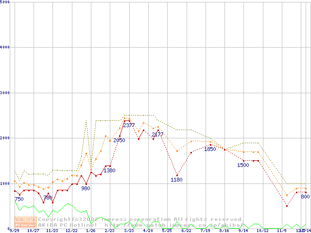 PC133 SDRAM DIMM CasLatency=3の最安値推移