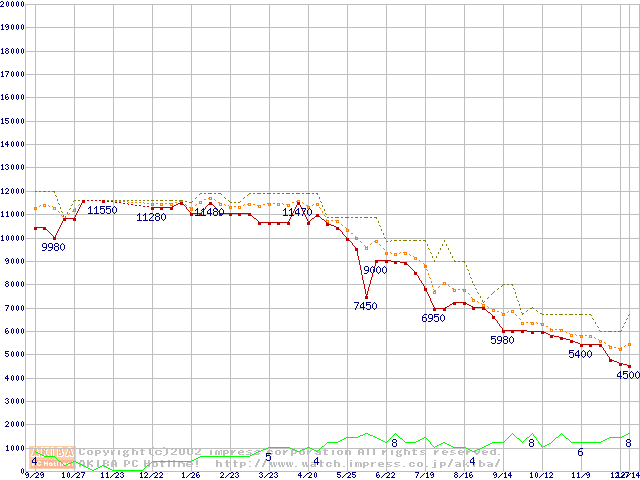 Athlon 1.1GHz(FSB200) バルクの価格推移