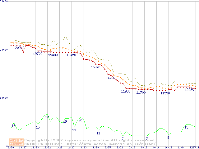 WD Caviar (7200rpm,UltraATA/100,2MB)の最安値推移