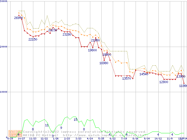 Socket A (OPGA,FSB 266MHz,L2 256KB,Palomino)の最安値推移