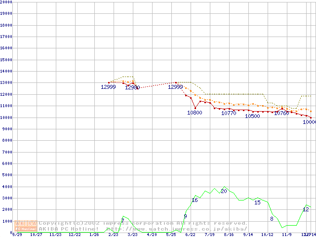 MKシリーズ (9.5mm,4200rpm,2MB,FDB,20GB/Platter)の最安値推移