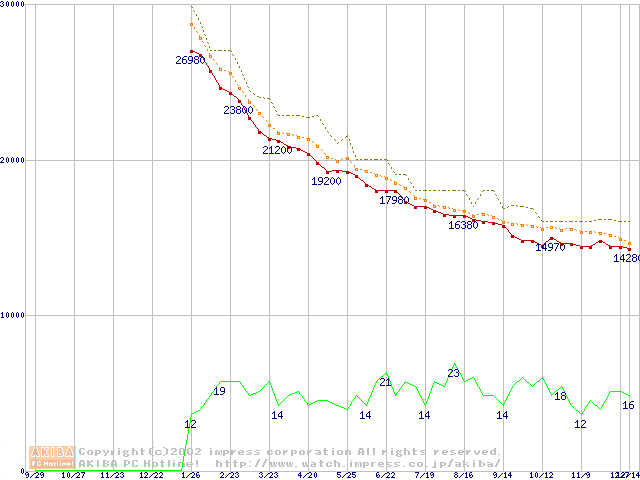 MKシリーズ (9.5mm,4200rpm,2MB,FDB,20GB/Platter)の最安値推移