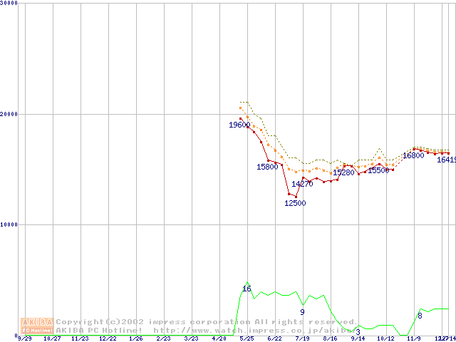 Deskstar 120GXP (7200rpm,2MB,UltraATA/100,BB)の最安値推移