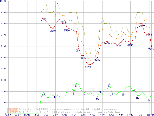 メモリ主要製品の最安値推移