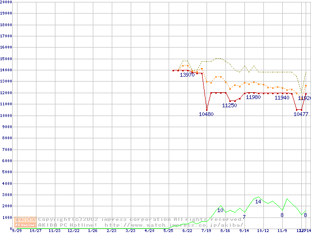 PC800-40 DRDRAM RIMM ECC対応の最安値推移