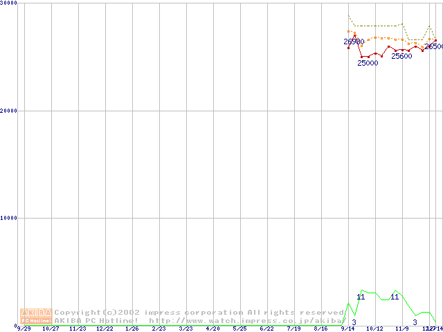 Socket A (OPGA,FSB 266MHz,L2 256KB,Thoroughbred)の最安値推移