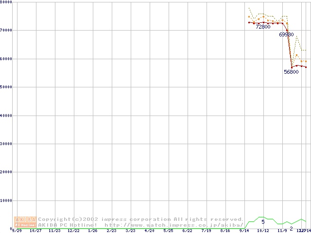 Socket 603 (micro-PGA,FSB 400MHz,L2 512KB,Prestonia)の最安値推移
