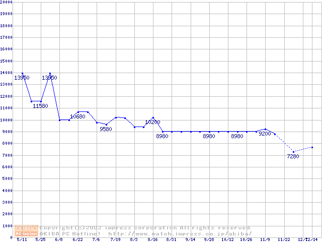 | Socket A (PGA,FSB 200MHz,L2 256KB,Palomino)の最安値推移 |