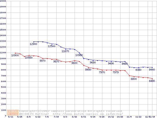 | [↓次グラフ]: | Socket 370 (FC-PGA2,FSB 100MHz,L2 256KB,Tualatin)の最安値推移 |