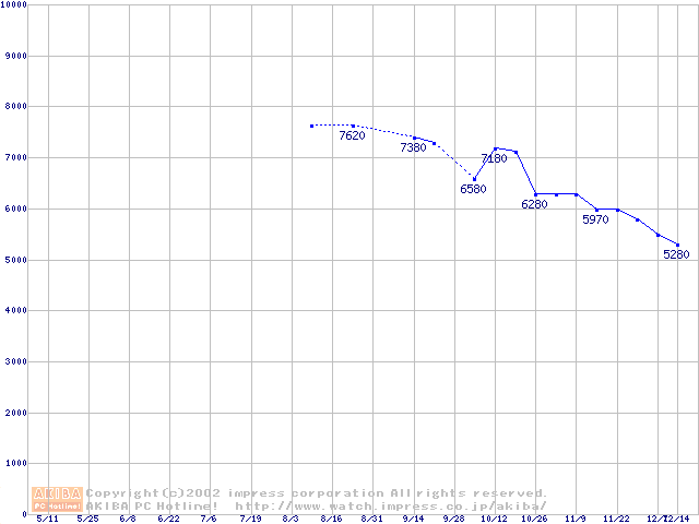 | [↓次グラフ]: | Socket A (OPGA,FSB 333MHz,L2 256KB,Thoroughbred)の最安値推移 |