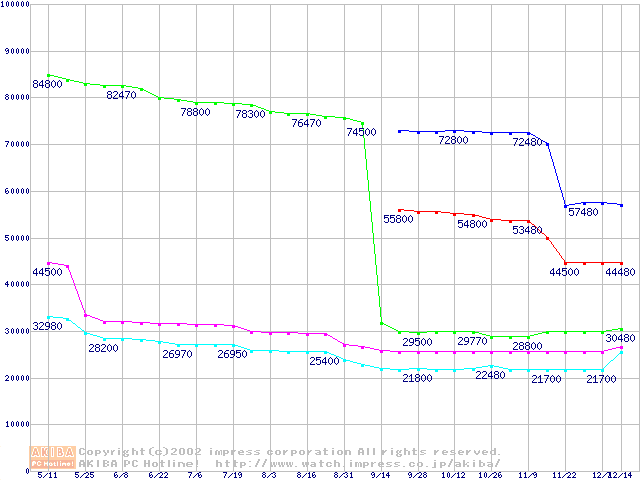 | [↑前グラフ]: | Socket 604 (micro-PGA,FSB 533MHz,L2 512KB,Prestonia)の最安値推移 |