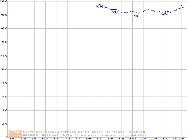 | [↓次グラフ]: | DiamondMax D540X-4G (5400rpm,UltraATA/133,40GB/Platter)の最安値推移 |