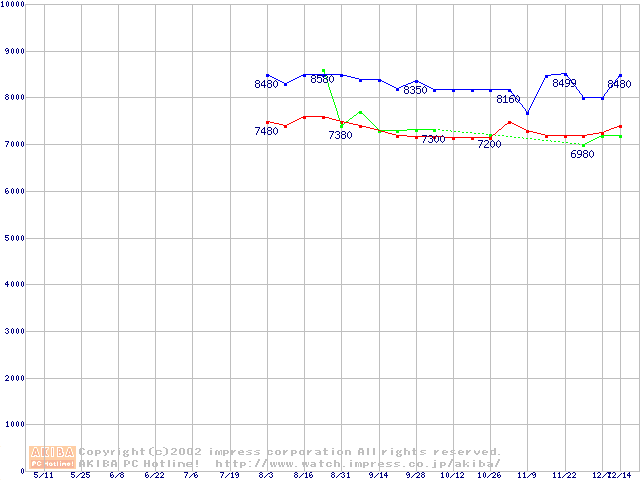 | [↑前グラフ]: | Fireball 3 (5400rpm,UltraATA/133,2MB,FDB)の最安値推移 |