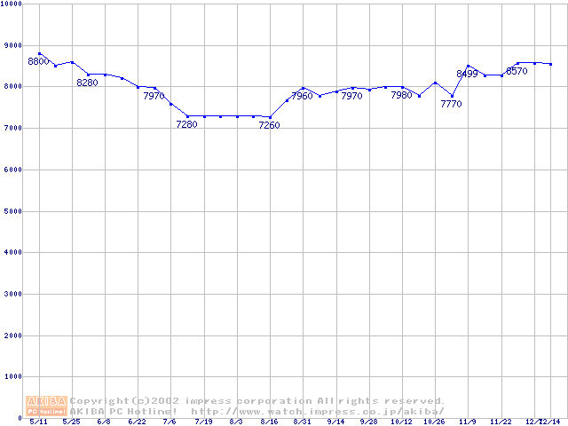 | [↓次グラフ]: | WD Caviar(Special Edition) (7200rpm,UltraATA/100,8MB)の最安値推移 |