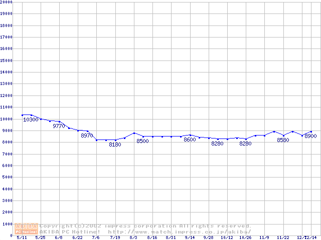 | [↓次グラフ]: | WD Caviar (5400rpm,UltraATA/100,2MB)の最安値推移 |