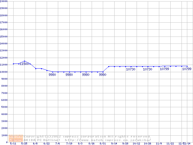 | [↑前グラフ]: | WD Caviar (7200rpm,UltraATA/100,20GB/Platter)の最安値推移 |