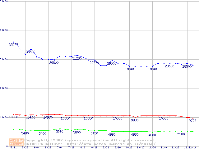| [↓次グラフ]: | PC800-45 DRDRAM RIMMの最安値推移 |