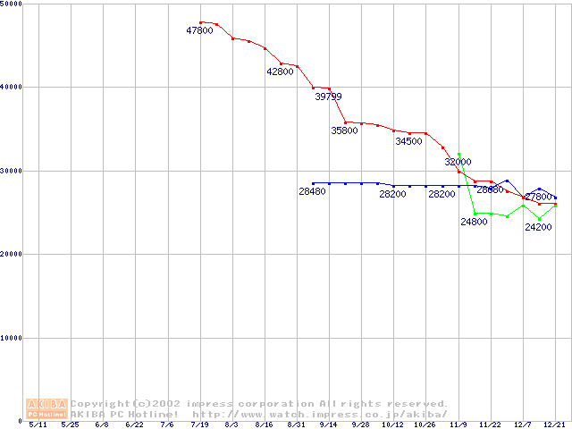 | [↓次グラフ]: | 2.5インチHDD主要製品(最安値3万円以上)の最安値推移 |