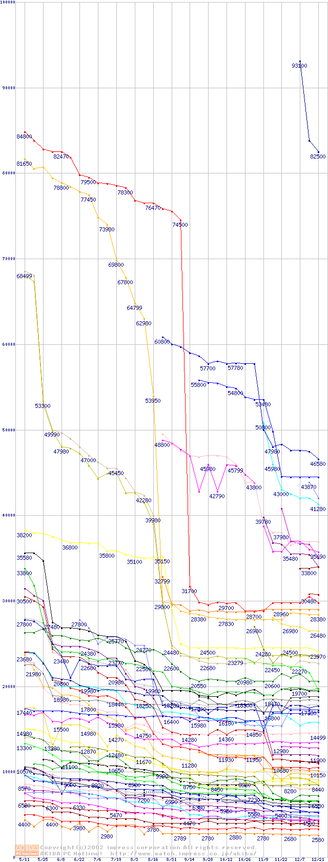 CPU主要製品の最安値推移