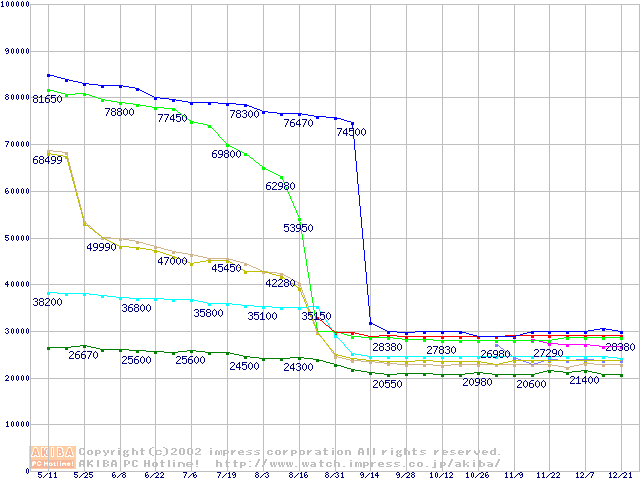CPU主要製品(最安値2万円~3万円未満)の最安値推移