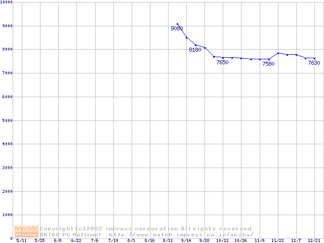 | [↑前グラフ]: | HDD 20GB~30GB未満(7200rpmクラス)の最安値推移 |