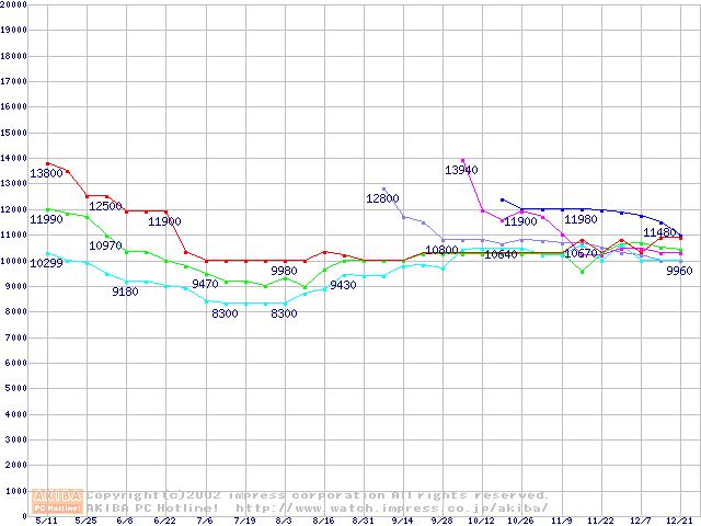 | [↑前グラフ]: | HDD 40GB~50GB未満(7200rpmクラス)の最安値推移 |