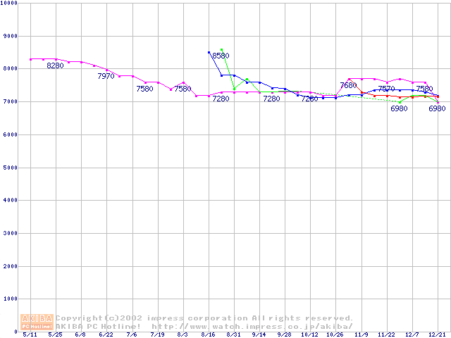 HDD 20GB~30GB未満(5400rpmクラス)の最安値推移