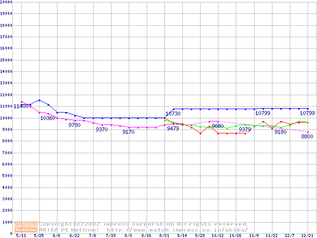 | [↑前グラフ]: | HDD 40GB~50GB未満(5400rpmクラス)の最安値推移 |