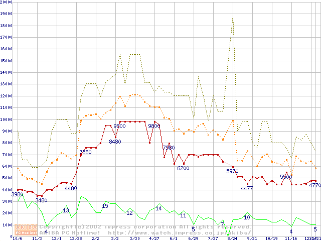 PC133 SDRAM DIMM CasLatency=3 ECC対応の最安値推移