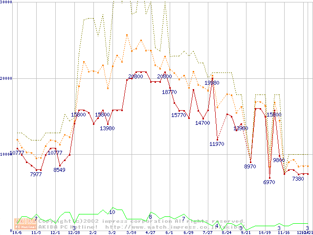 PC133 SDRAM DIMM CasLatency=3 ECC対応の最安値推移