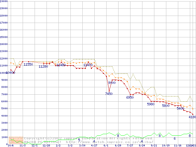 Athlon 1.1GHz(FSB200) バルクの価格推移