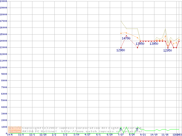 Socket 370 (FC-PGA,FSB 133MHz,L2 256KB)の最安値推移