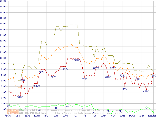 PC100 SDRAM DIMM CasLatency=2 ECC対応の最安値推移