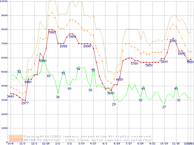 メモリ主要製品の最安値推移