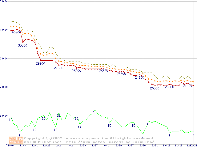 Pentium III-S 1.26GHz FC-PGA2 リテールパッケージの価格推移