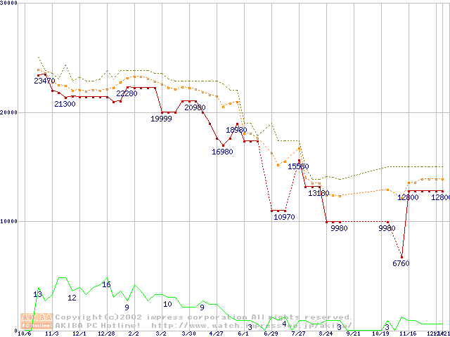 Athlon MP 1500+ (1.33GHz) バルクの価格推移