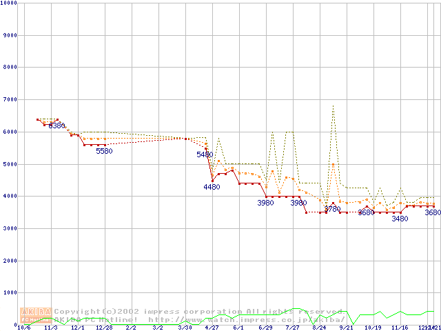 Socket 370 (PGA,FSB 133MHz,L2 64KB)の最安値推移