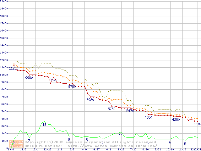 Socket A (PGA,FSB 200MHz,L2 64KB,Morgan)の最安値推移