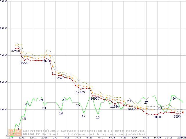 Athlon XP 1800+ (1.53GHz) リテールパッケージの価格推移