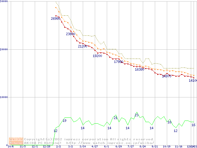2.5インチHDD主要製品の最安値推移