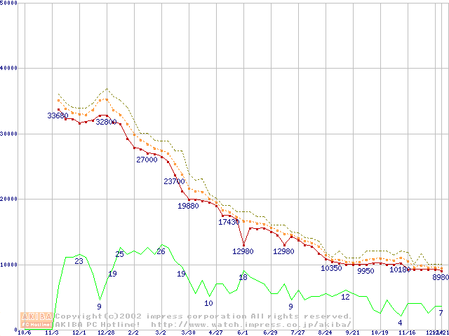 Socket A (OPGA,FSB 266MHz,L2 256KB,Palomino)の最安値推移
