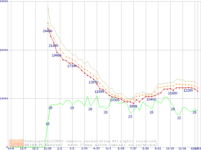 Deskstar 120GXP (7200rpm,2MB,UltraATA/100,BB)の最安値推移