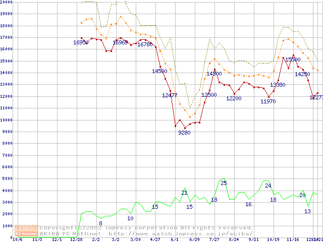 メモリ主要製品の最安値推移