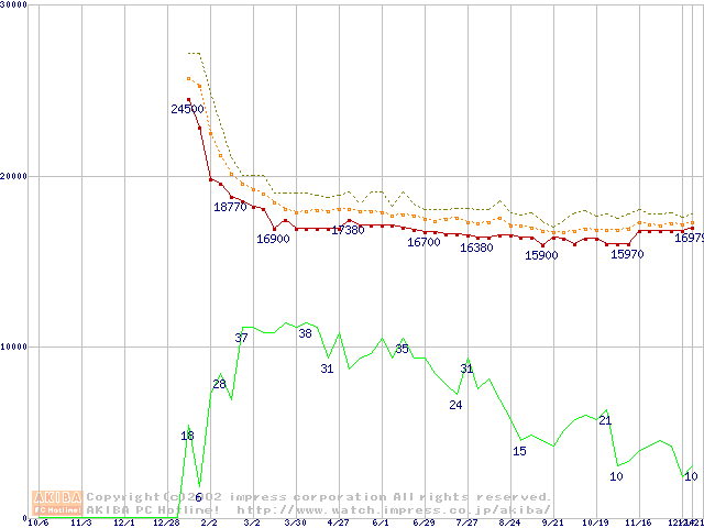 Pentium 4 1.60A GHz リテールパッケージの価格推移