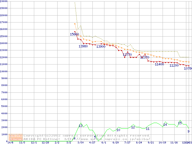 MHRシリーズ (9.5mm,4200rpm,UltraATA/100,2MB,FDB,20GB/Platter)の最安値推移
