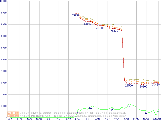 Socket 603 (micro-PGA,FSB 400MHz,L2 512KB,Prestonia)の最安値推移