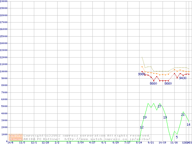 DiamondMax 16 (5400rpm,UltraATA/133,2MB,80GB/Platter,FDB)の最安値推移