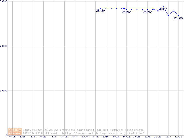 | [↑前グラフ]: | MHRシリーズ (9.5mm,4200rpm,UltraATA/100,2MB,FDB,20GB/Platter)の最安値推移 |