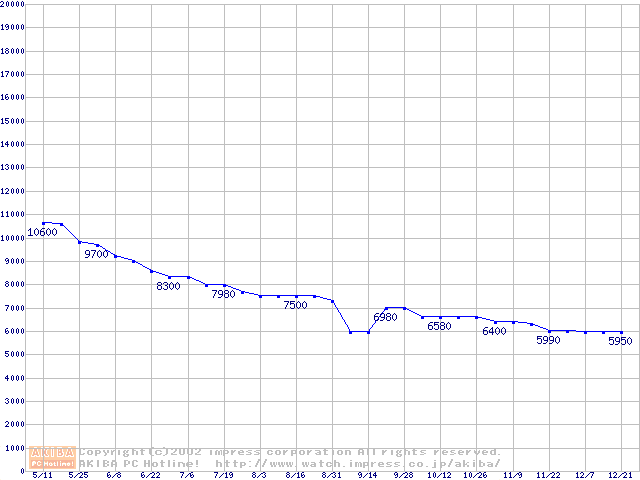 | [↓次グラフ]: | Socket A (PGA,FSB 200MHz,L2 256KB,Thunderbird)の最安値推移 |