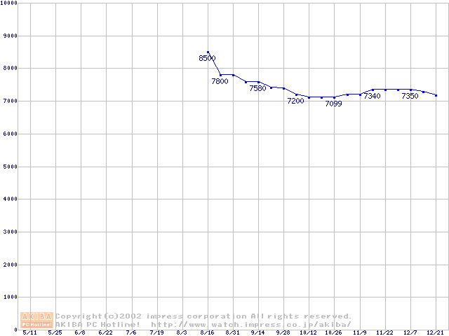 | [↑前グラフ]: | Barracuda ATA IV (7200rpm,UltraATA/100,2MB,40GB/Platter,FDB)の最安値推移 |